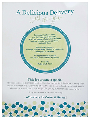 Thought you might like to see a photo of the tasty ice cream we received from you and your team last week! Thanks!